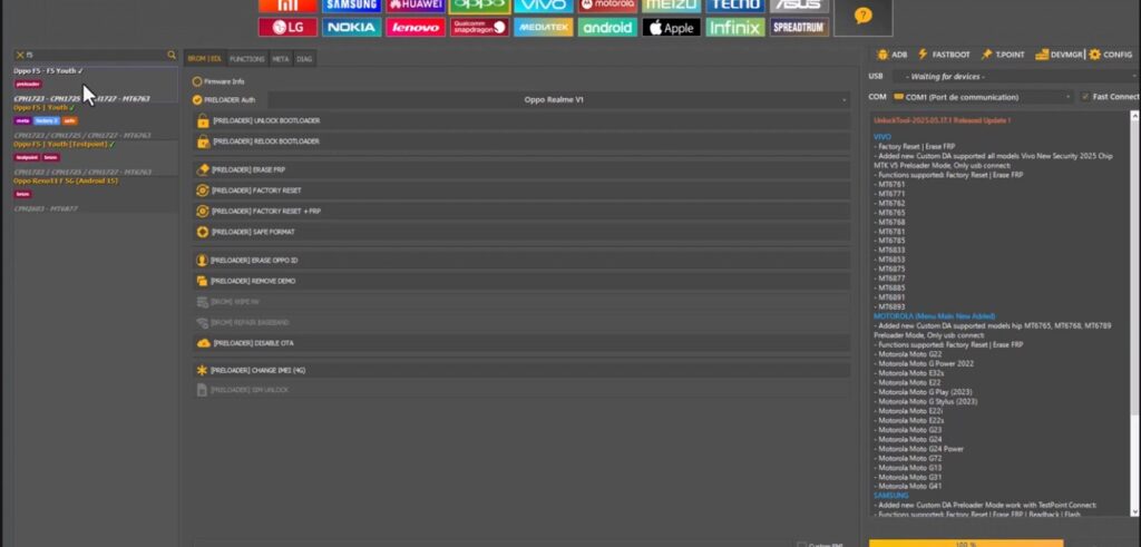 Hỗ trợ đa năng: Không chỉ Oppo F5, phần mềm hỗ trợ hàng ngàn model từ Apple, Samsung, Xiaomi, Vivo đến các máy chạy chip MTK, Qualcomm, SPD.